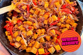 This skillet dinner brings together spicy Mexican chorizo and sweet potatoes for a hearty, one-pan meal that’s especially welcome in the colder months.