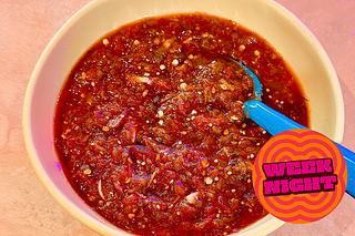 Charred tomatoes and tomatillos form the base of this smoky, tangy salsa, while a mix of serrano and jalapeño chiles layers in fresh heat.